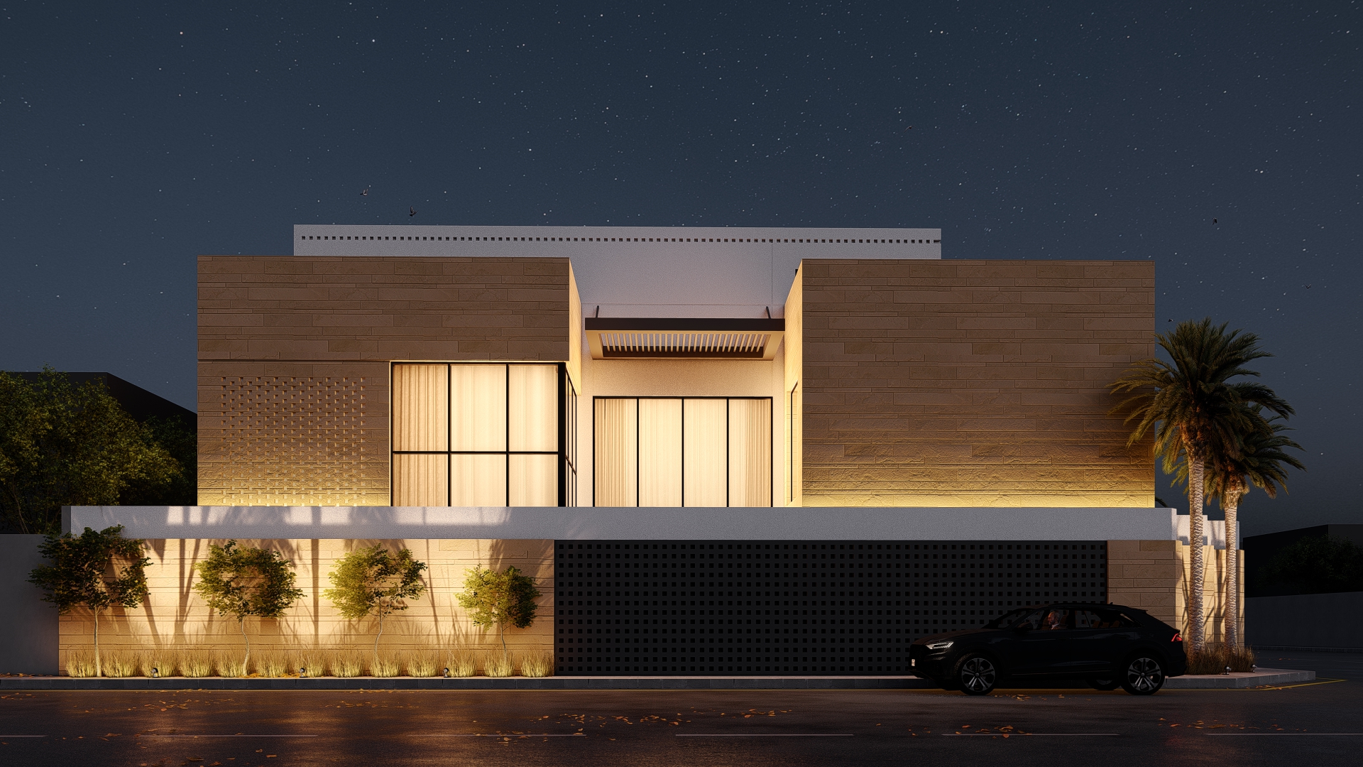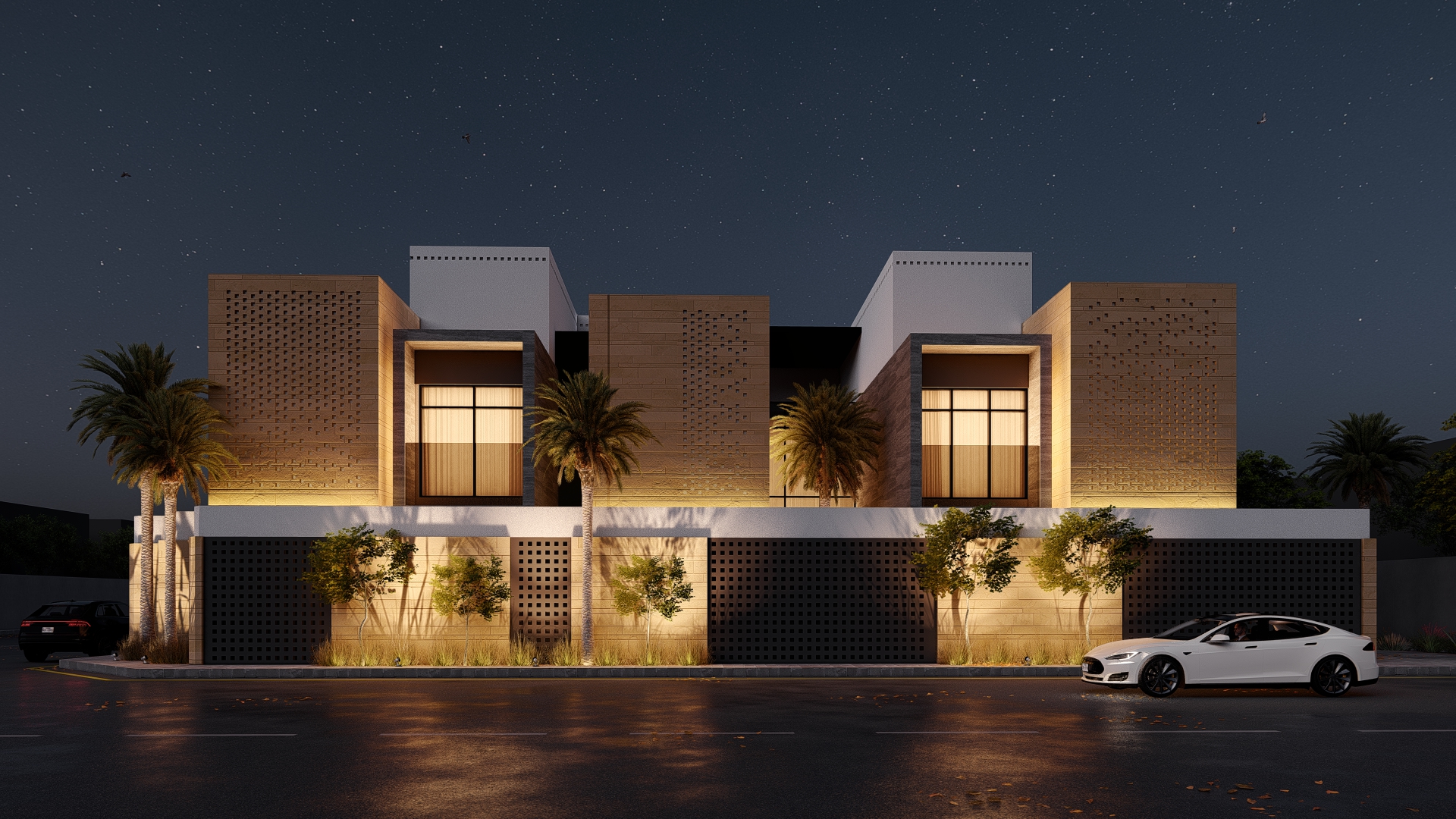موقف + غرفة خادمة + صالة كبيرة + مطبخ أمريكي + غرفة سائق + جلسة خارجية + مكيفة + سمارت هوم + مستودع